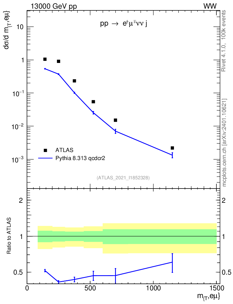Lines: data, pythia8 8.313 qcdcr2 |