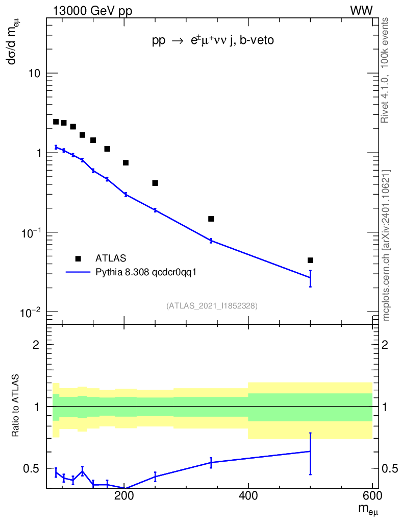 Lines: data, pythia8 8.308 qcdcr0qq1 |