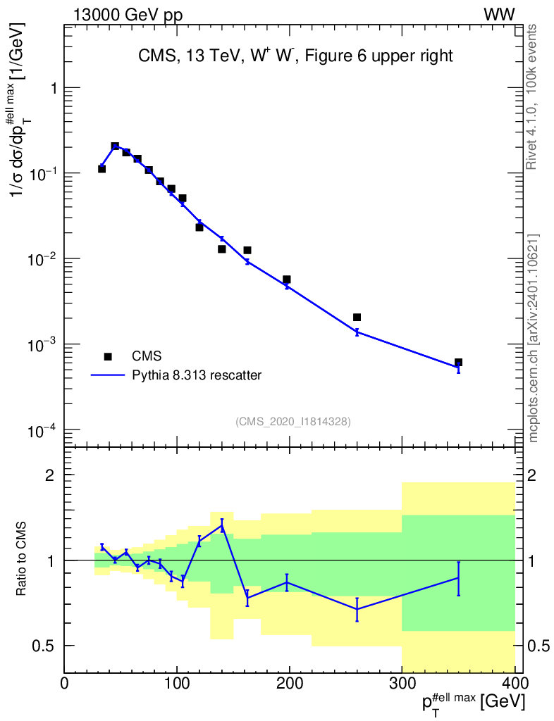 Lines: data, pythia8 8.313 rescatter |