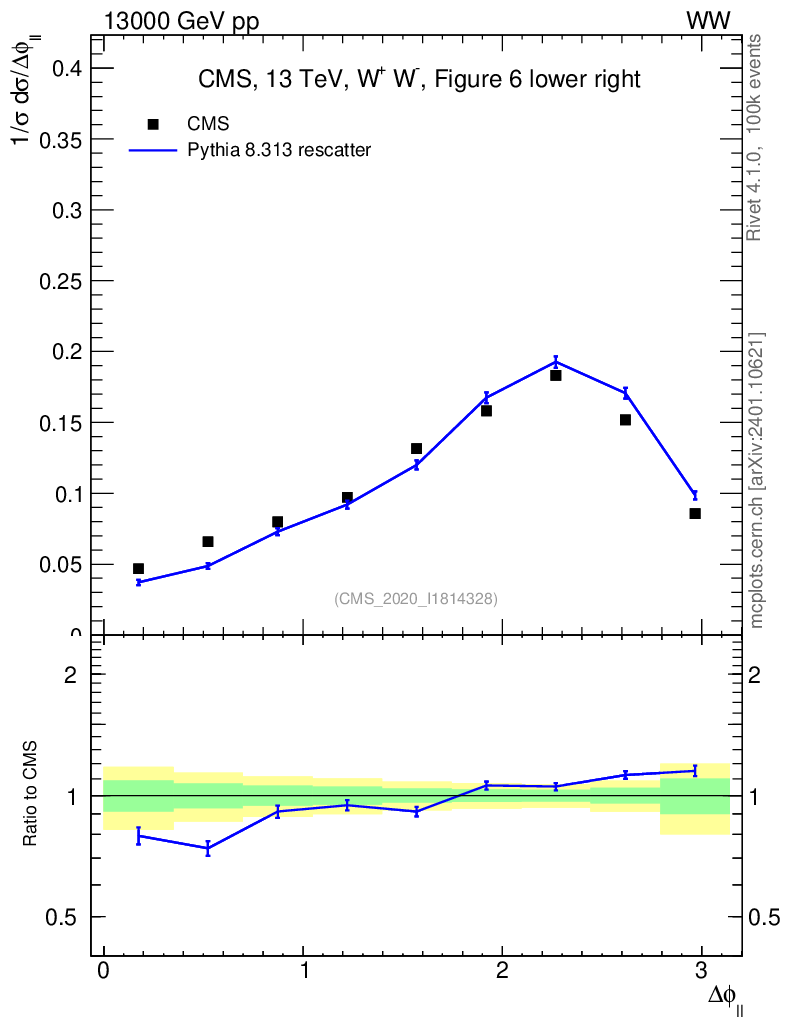 Lines: data, pythia8 8.313 rescatter |