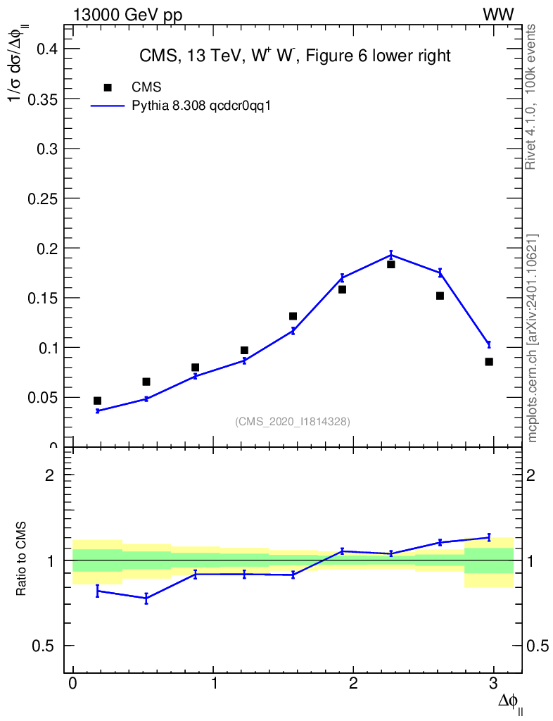 Lines: data, pythia8 8.308 qcdcr0qq1 |