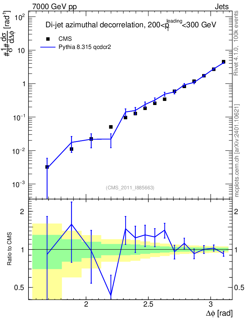 Lines: data, pythia8 8.315 qcdcr2 |
