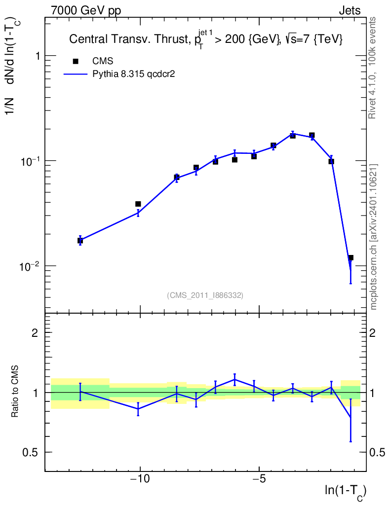 Lines: data, pythia8 8.315 qcdcr2 |