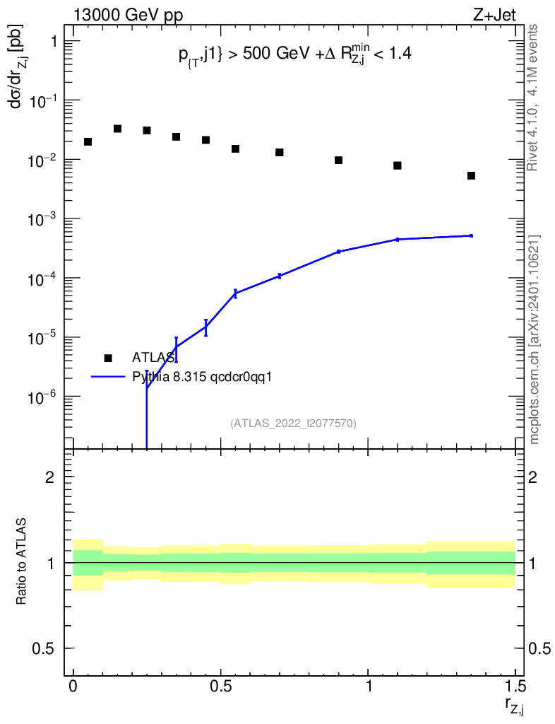 Lines: data, pythia8 8.315 qcdcr0qq1 |