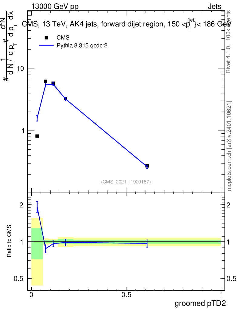 Lines: data, pythia8 8.315 qcdcr2 |