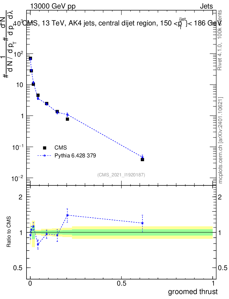 Lines: data, pythia6 6.428 379 |