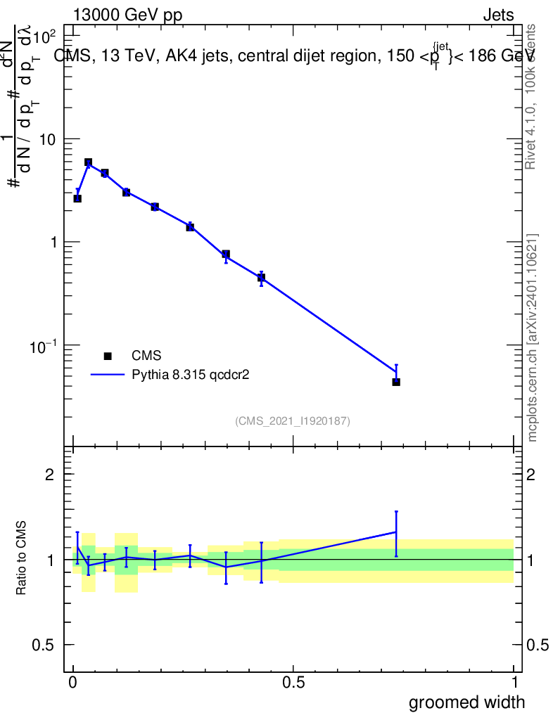 Lines: data, pythia8 8.315 qcdcr2 |