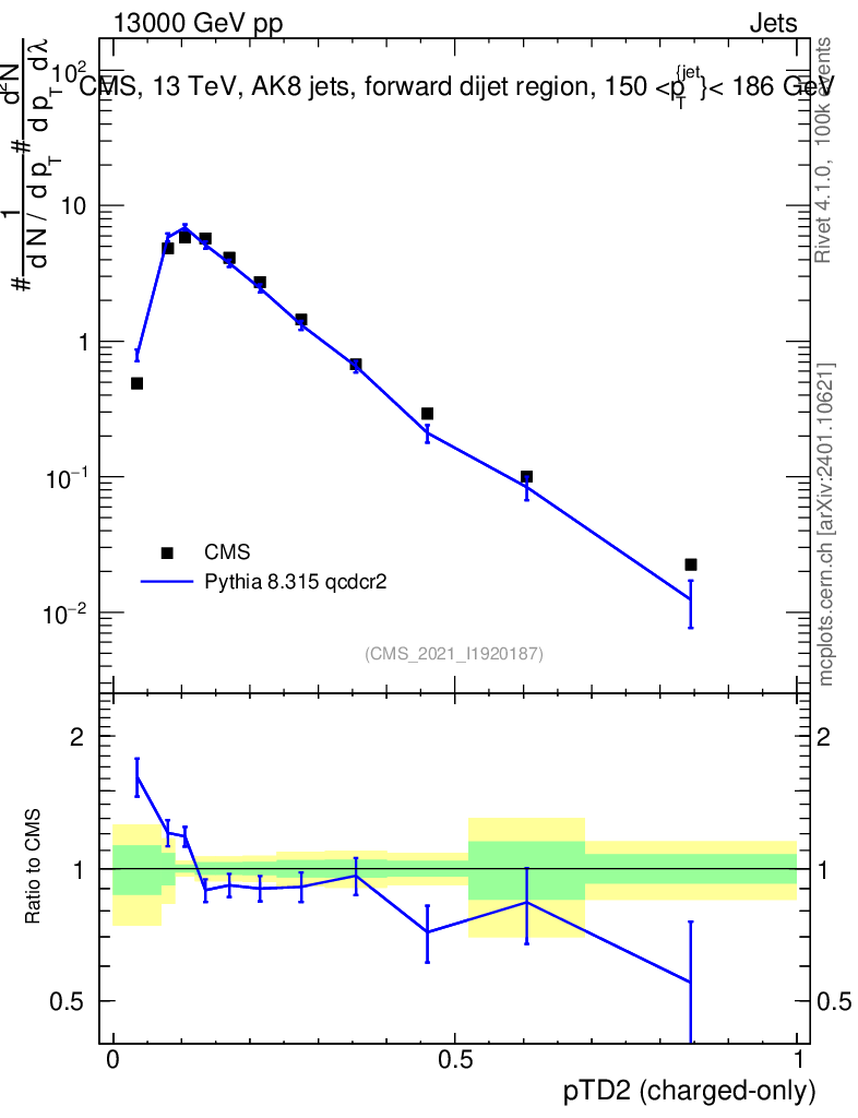 Lines: data, pythia8 8.315 qcdcr2 |