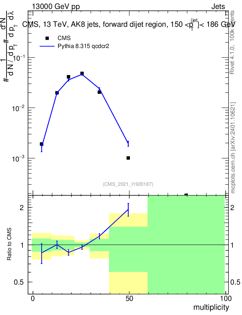 Lines: data, pythia8 8.315 qcdcr2 |