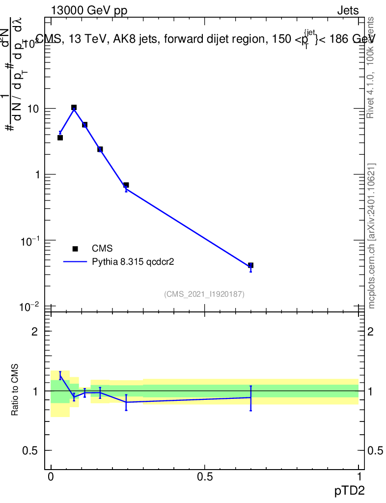 Lines: data, pythia8 8.315 qcdcr2 |