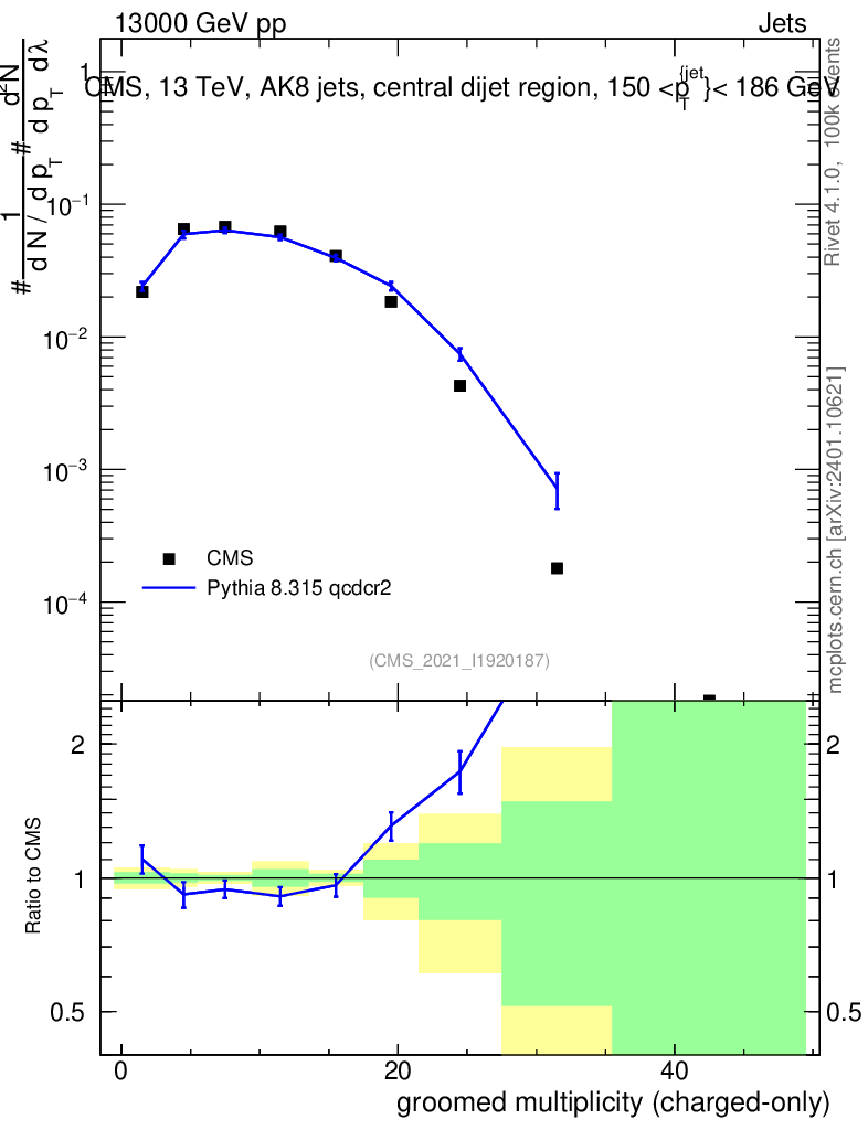 Lines: data, pythia8 8.315 qcdcr2 |