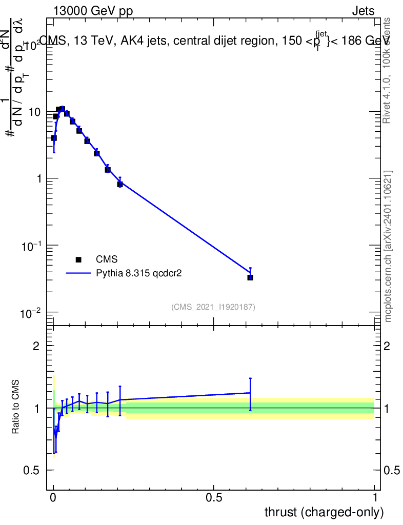 Lines: data, pythia8 8.315 qcdcr2 |
