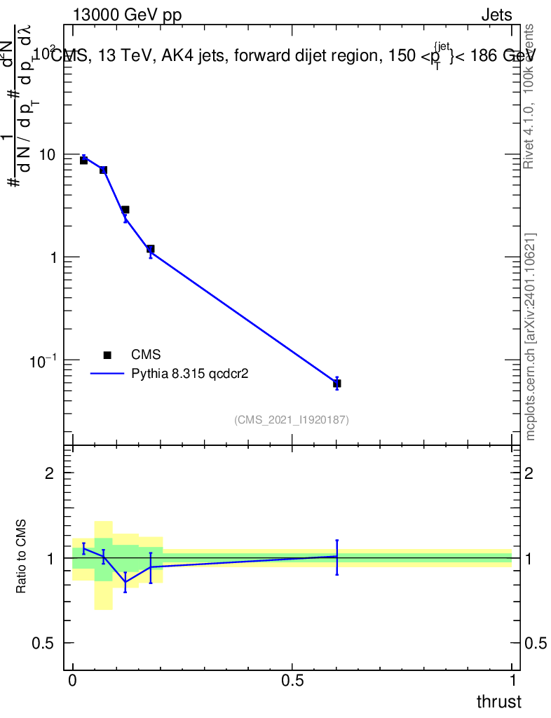 Lines: data, pythia8 8.315 qcdcr2 |
