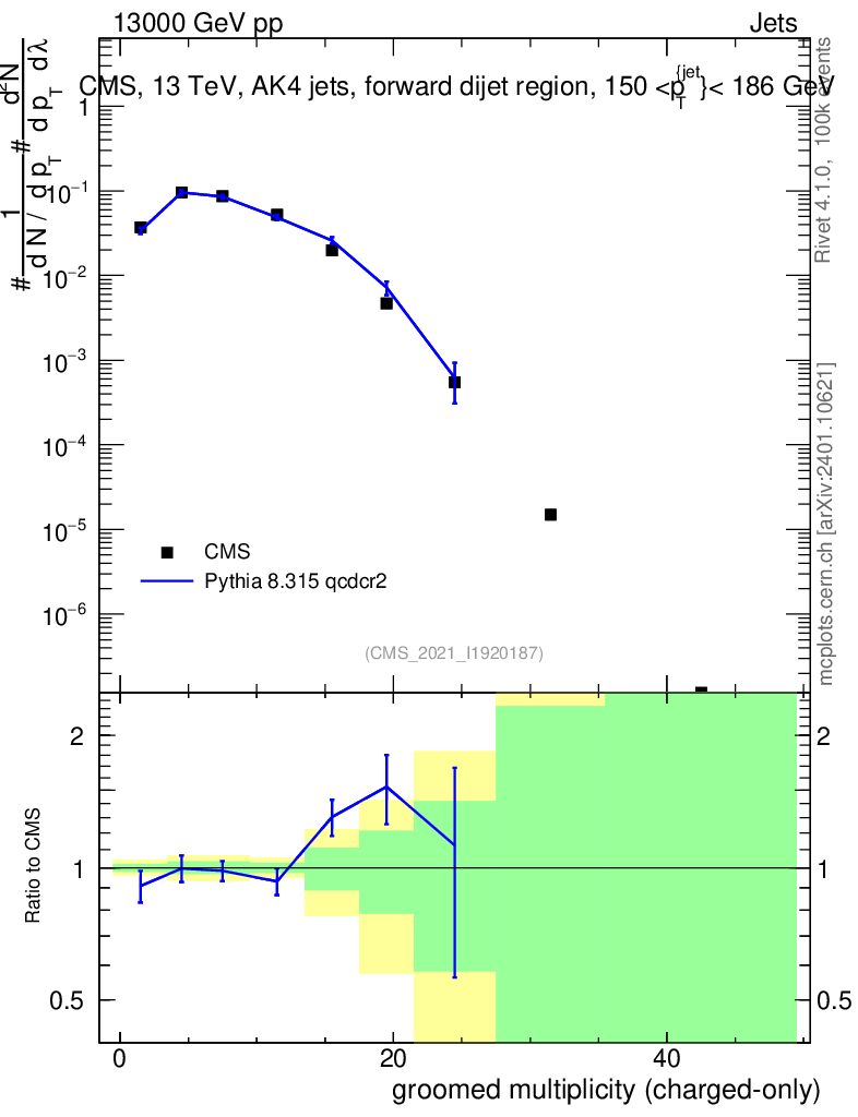 Lines: data, pythia8 8.315 qcdcr2 |