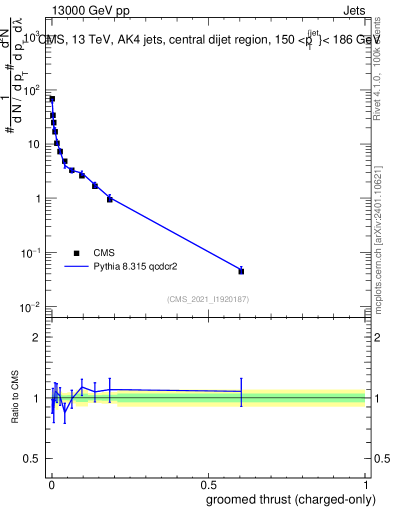 Lines: data, pythia8 8.315 qcdcr2 |