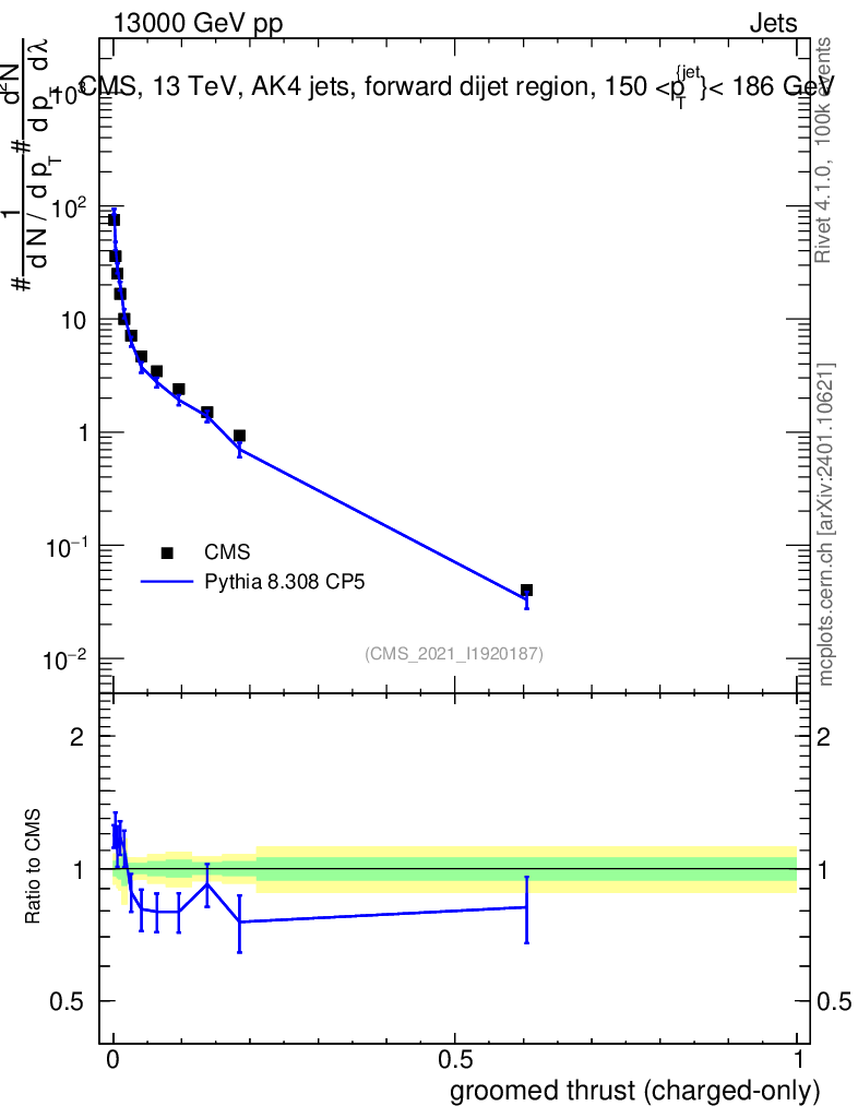 Lines: data, pythia8 8.308 CP5 |