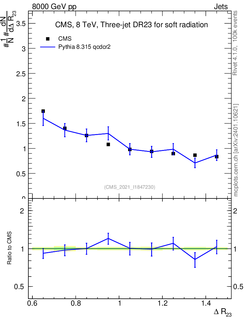 Lines: data, pythia8 8.315 qcdcr2 |
