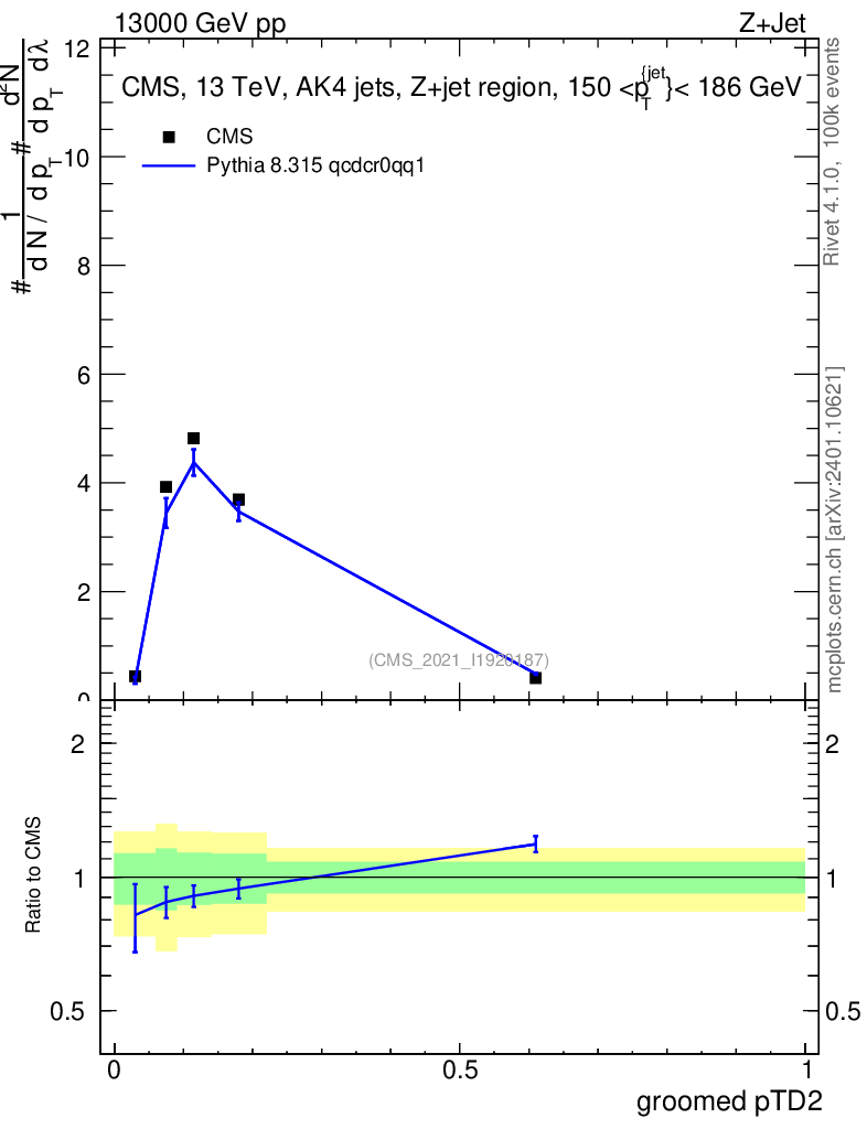 Lines: data, pythia8 8.315 qcdcr0qq1 |