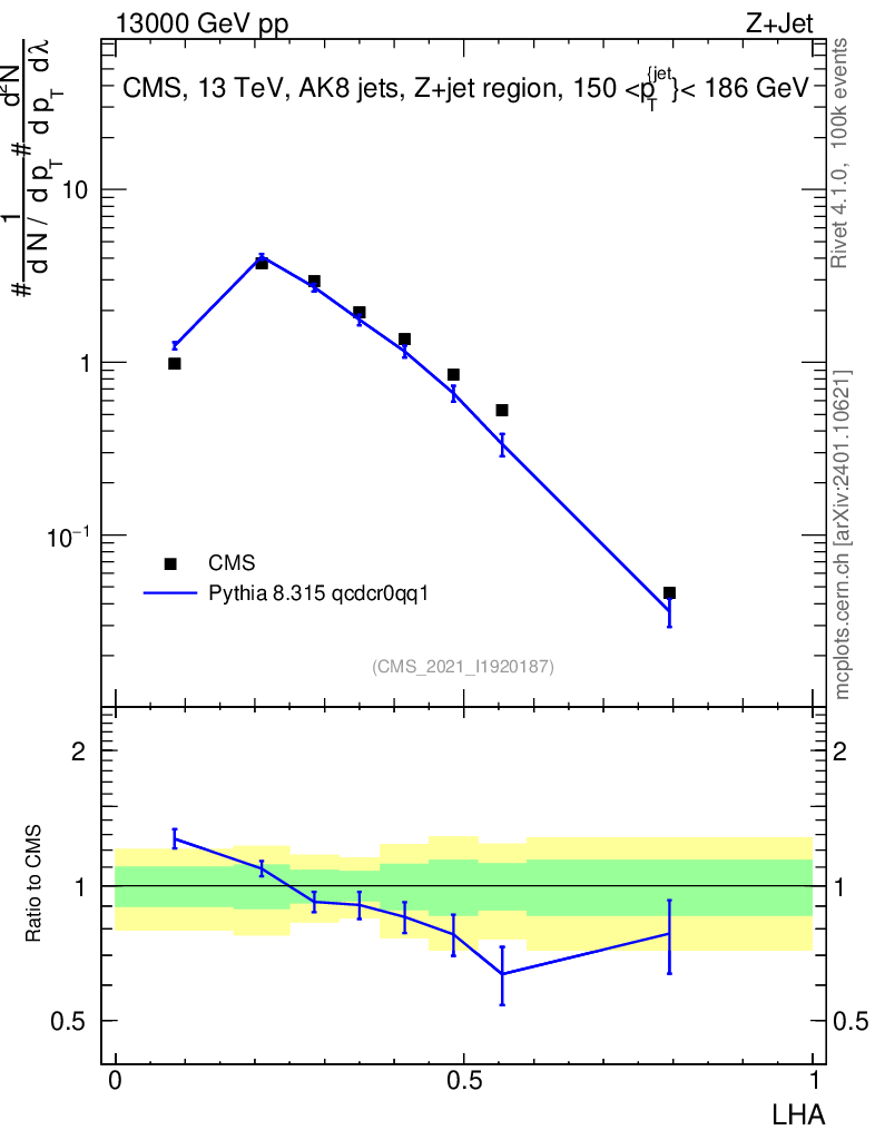 Lines: data, pythia8 8.315 qcdcr0qq1 |