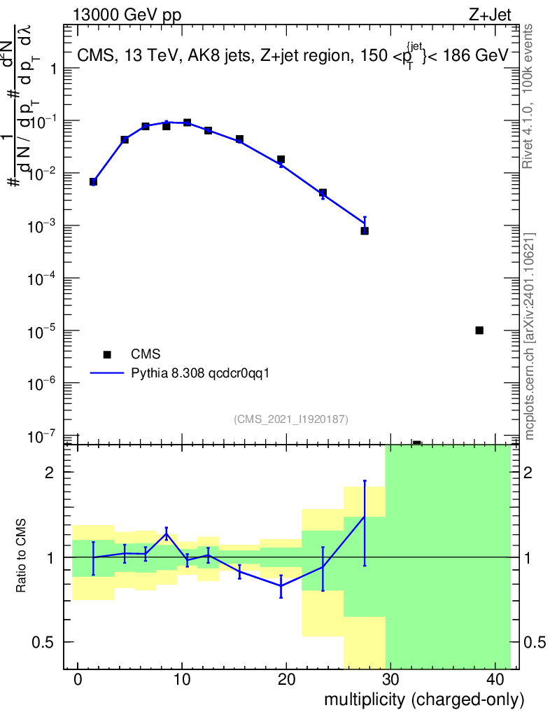 Lines: data, pythia8 8.308 qcdcr0qq1 |