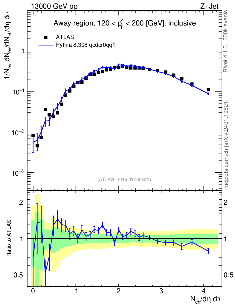 Lines: data, pythia8 8.308 qcdcr0qq1 |