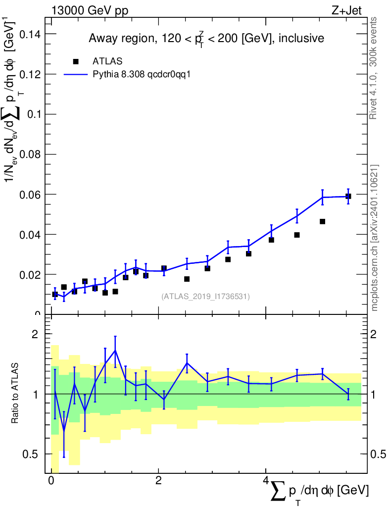 Lines: data, pythia8 8.308 qcdcr0qq1 |