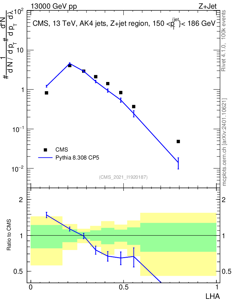 Lines: data, pythia8 8.308 CP5 |
