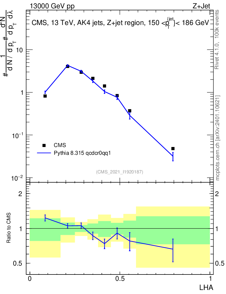 Lines: data, pythia8 8.315 qcdcr0qq1 |