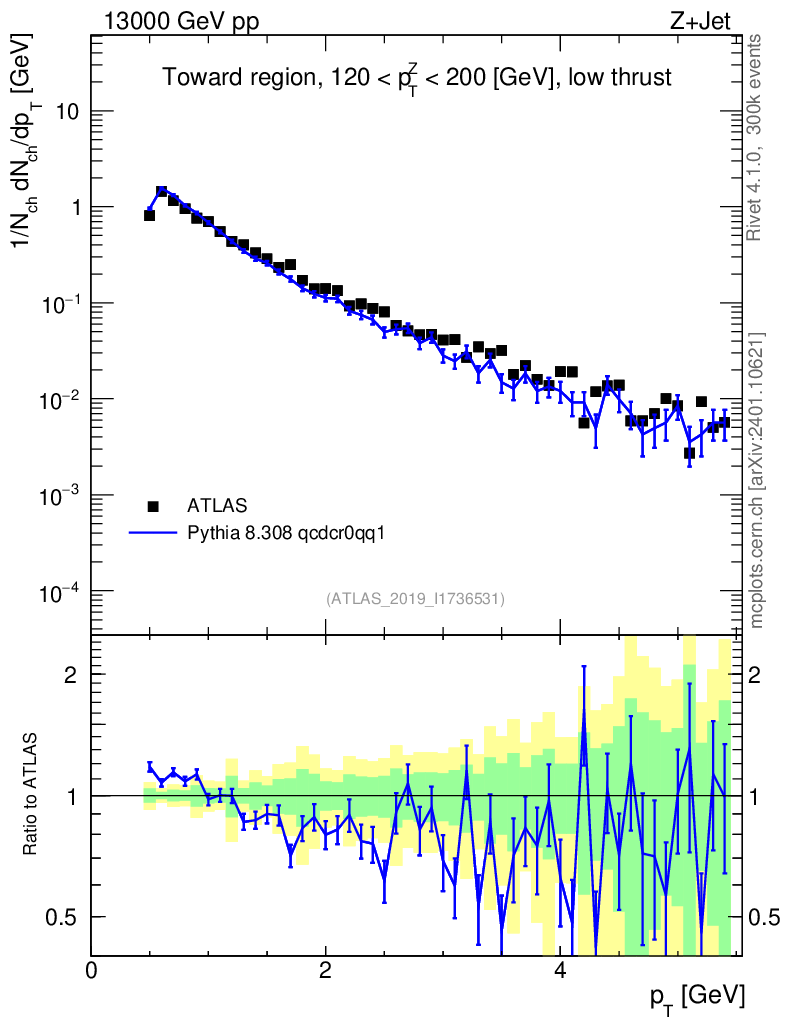 Lines: data, pythia8 8.308 qcdcr0qq1 |