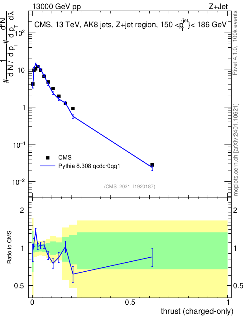 Lines: data, pythia8 8.308 qcdcr0qq1 |