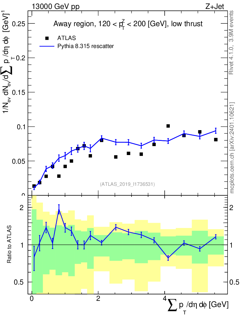 Lines: data, pythia8 8.315 rescatter |