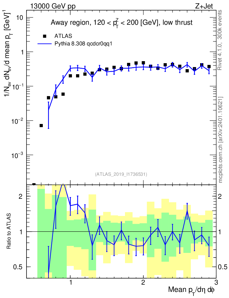 Lines: data, pythia8 8.308 qcdcr0qq1 |