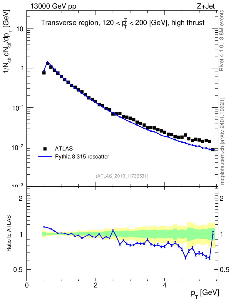 Lines: data, pythia8 8.315 rescatter |