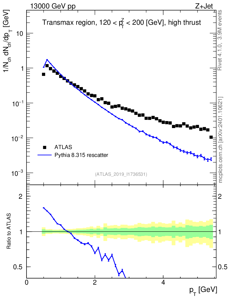 Lines: data, pythia8 8.315 rescatter |