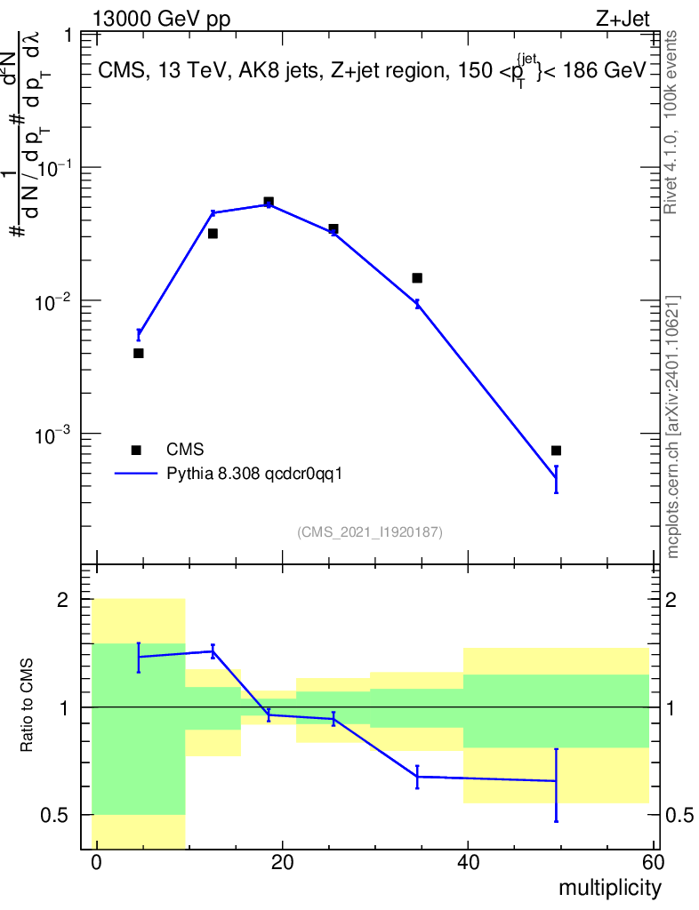 Lines: data, pythia8 8.308 qcdcr0qq1 |
