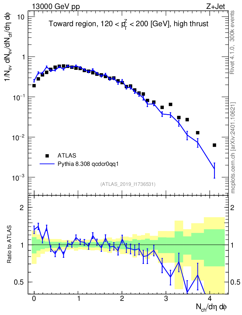 Lines: data, pythia8 8.308 qcdcr0qq1 |