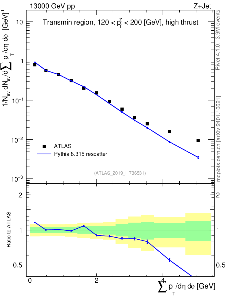 Lines: data, pythia8 8.315 rescatter |