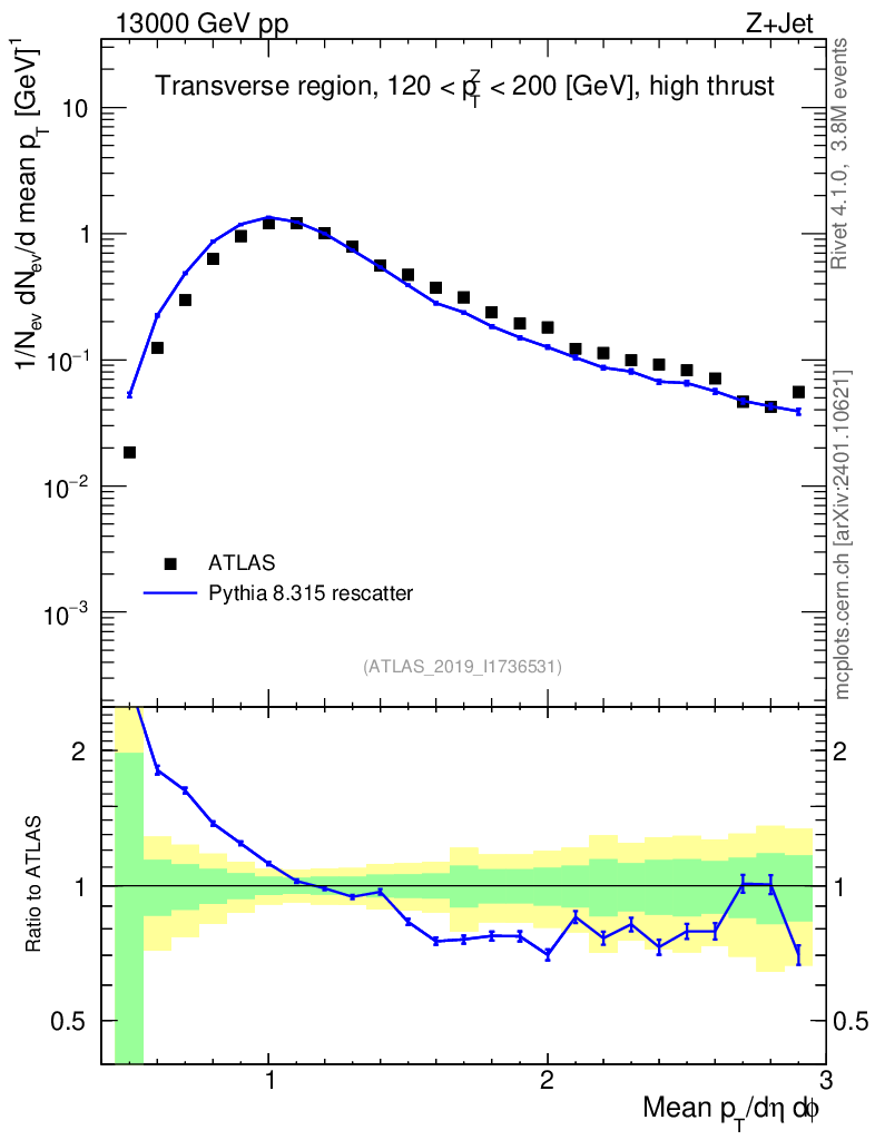 Lines: data, pythia8 8.315 rescatter |