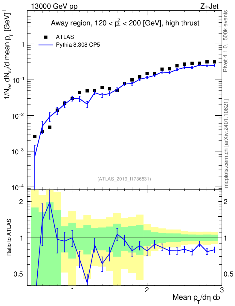 Lines: data, pythia8 8.308 CP5 |