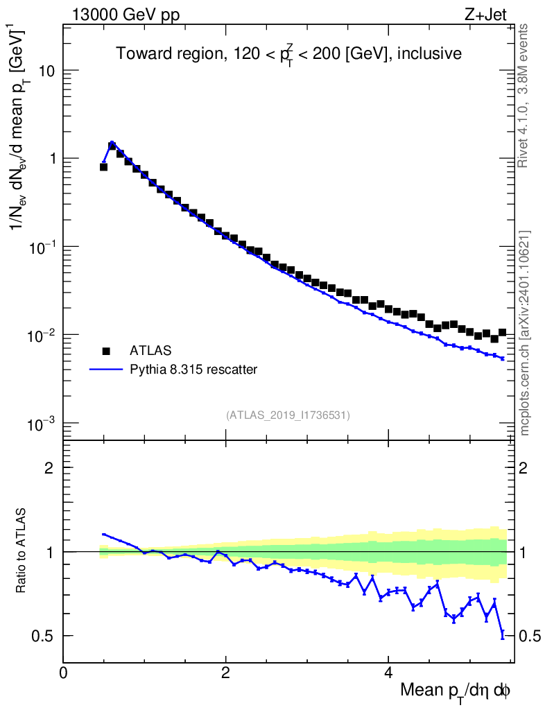 Lines: data, pythia8 8.315 rescatter |