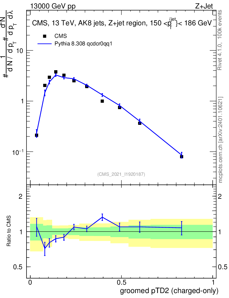 Lines: data, pythia8 8.308 qcdcr0qq1 |