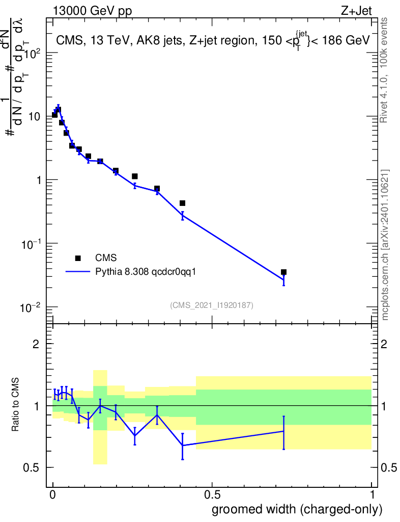 Lines: data, pythia8 8.308 qcdcr0qq1 |