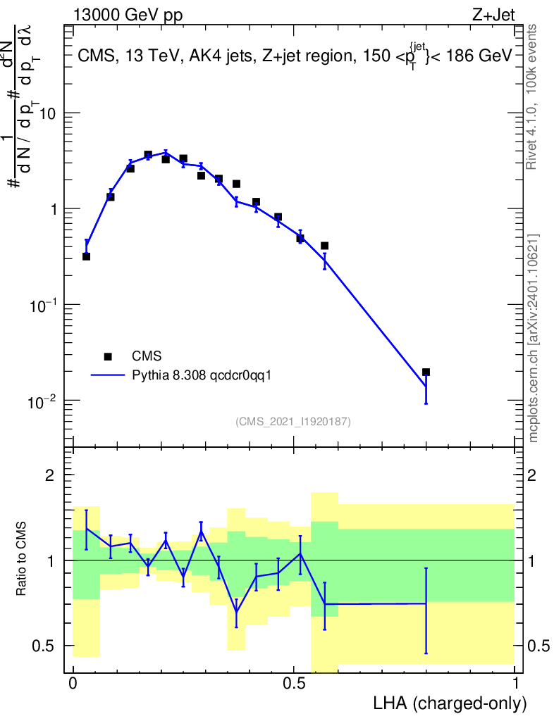 Lines: data, pythia8 8.308 qcdcr0qq1 |