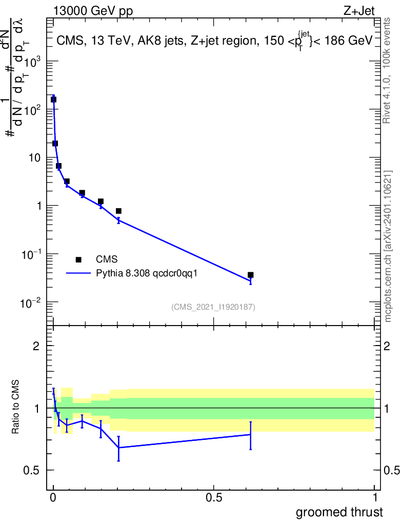 Lines: data, pythia8 8.308 qcdcr0qq1 |
