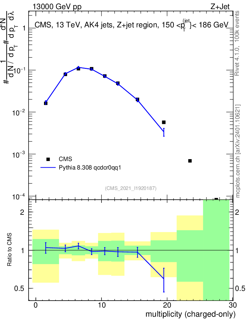 Lines: data, pythia8 8.308 qcdcr0qq1 |