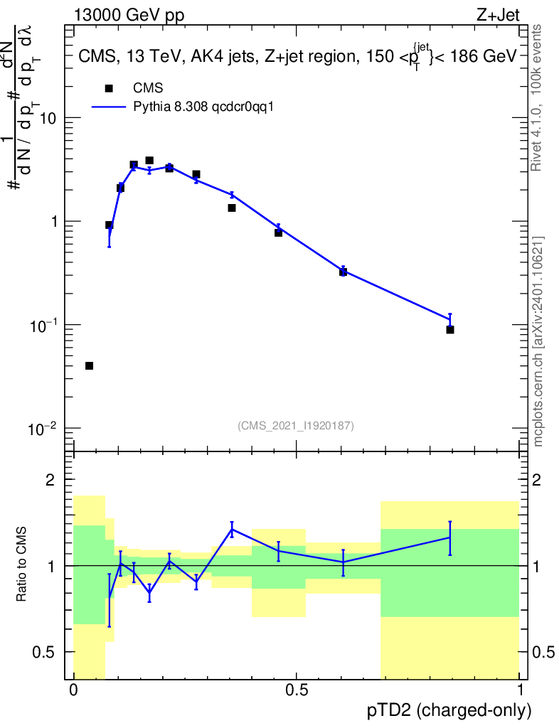 Lines: data, pythia8 8.308 qcdcr0qq1 |