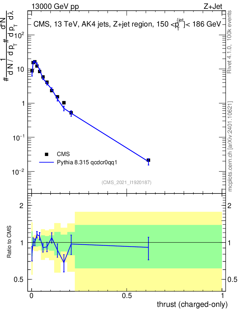 Lines: data, pythia8 8.315 qcdcr0qq1 |
