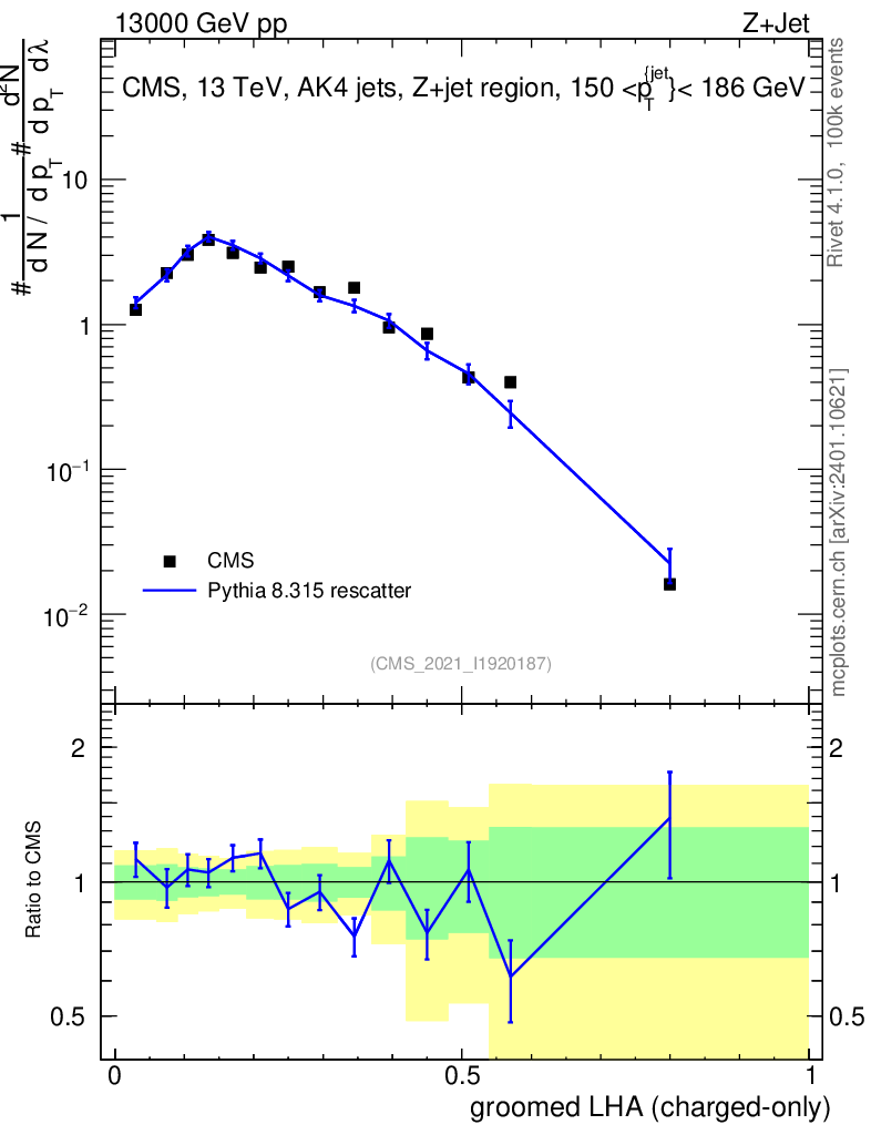Lines: data, pythia8 8.315 rescatter |