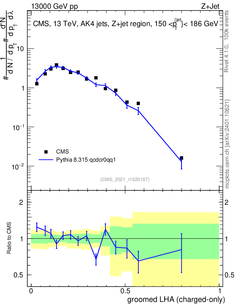 Lines: data, pythia8 8.315 qcdcr0qq1 |