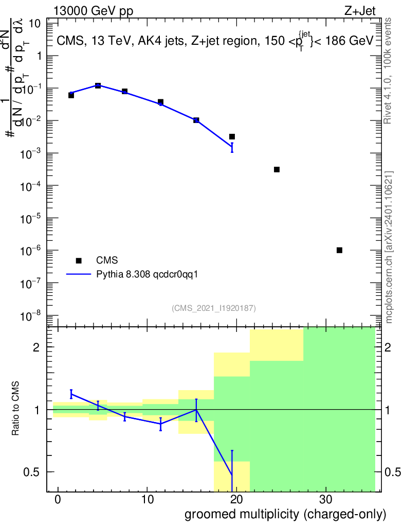 Lines: data, pythia8 8.308 qcdcr0qq1 |